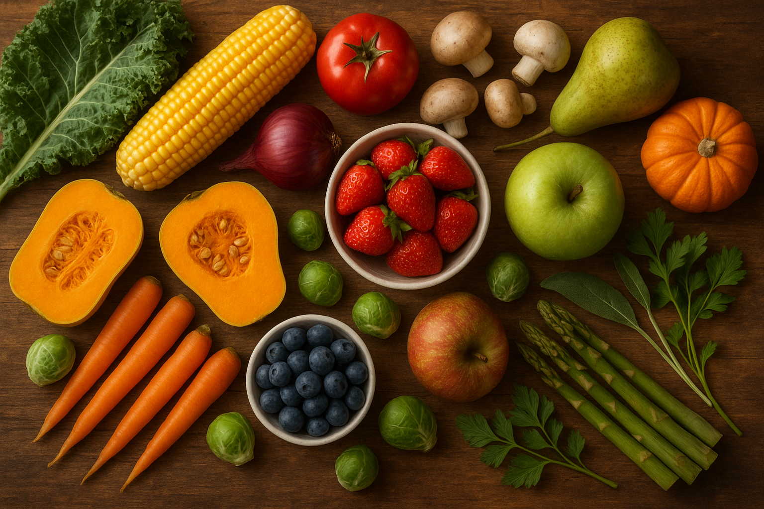 – Common in-season items: squash (pumpkin, butternut, acorn), apples, pears, sweet potatoes, mushrooms, root vegetables, leafy greens.
